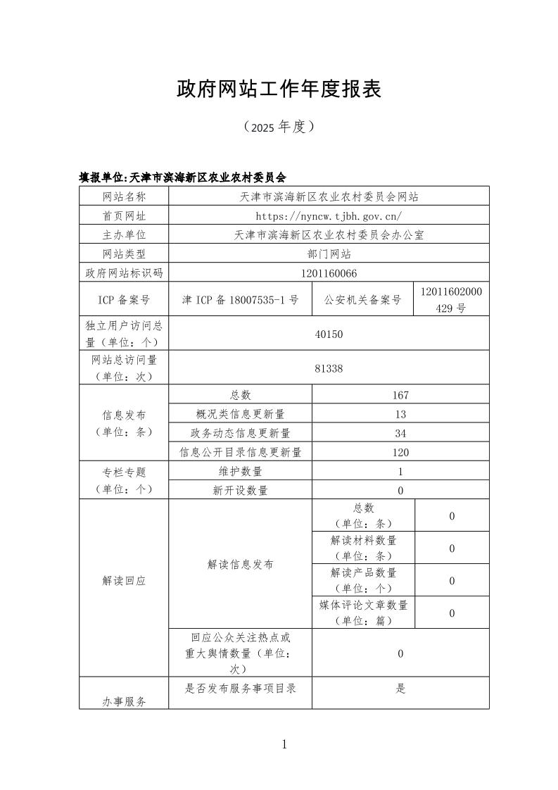 滨海新区农业农村委政府网站工作年度报表(2025年度)